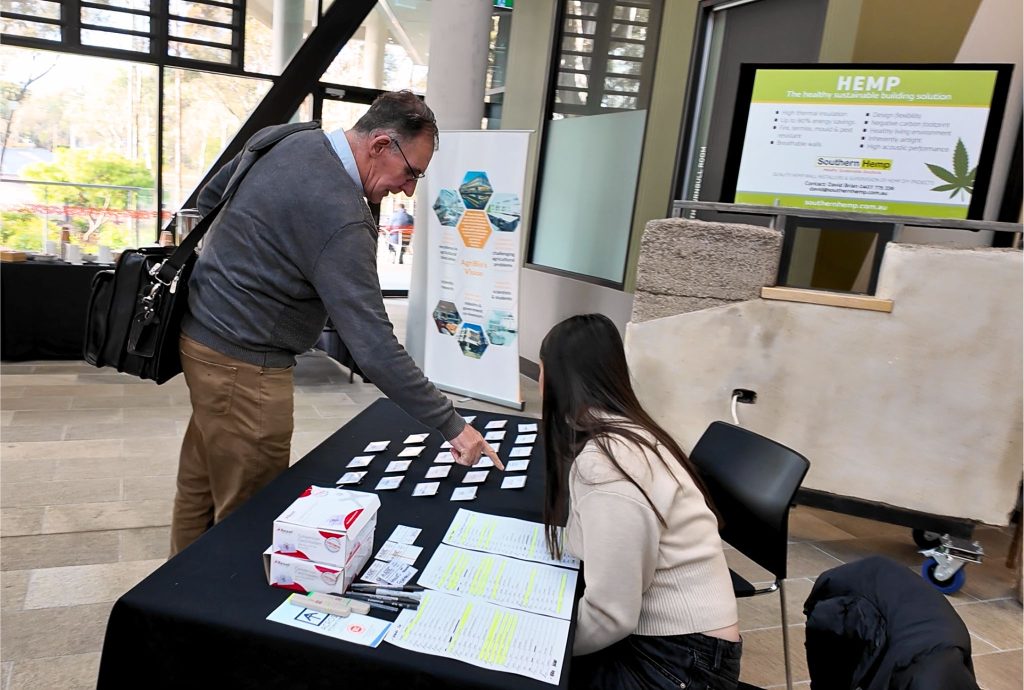 Notably, while most attendees were Australian-based, there were limited international supplier representatives present—something that’s pivotal to the early adoption of emerging technologies. For example, hempcrete blocks, while not yet manufactured at scale in Australia, are readily available in more established overseas markets. Access to imported materials can help fast-track adoption and standards development here, and stimulate healthy competition that lifts local product quality. Clients who prefer Australian-made will always have that as a point of difference—reduced transport emissions, regional supply chains, and the pride of using local products. But learning from those who are further along gives us the opportunity to leapfrog mistakes and build a world-class, resilient hemp building industry sooner.