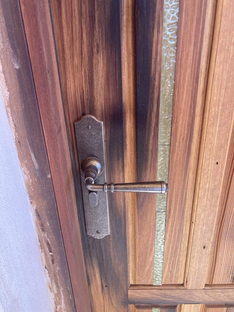 The doors I made out of old reclaimed doors one of Gene’s uncles had given to me. I disassembled them, recut the timber, reused the frame but made the doors thicker and made them into a decorative item rather than just a useful part of a house. Every door is different. I used reclaimed timber where I added more timber to the doors.