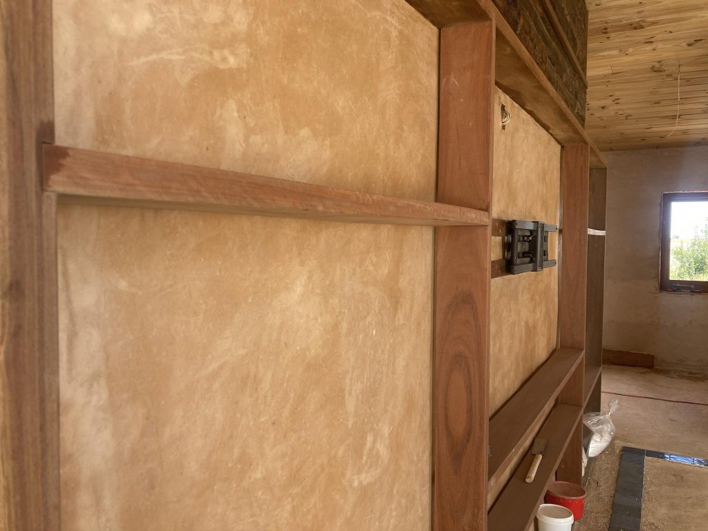 The internal clay walls are a lath and plaster type system with clay dug out from the building site and sand from our paddocks.