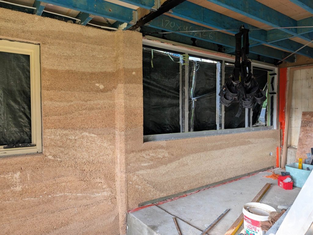 Builder Dan El Milo is completing a hempcrete studio in Lawson using a hybrid construction method that combines hempcrete blocks, cast-in-situ hempcrete, and a crank-based slipform formwork system.