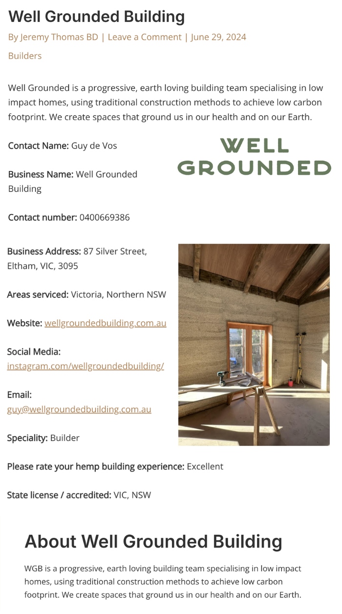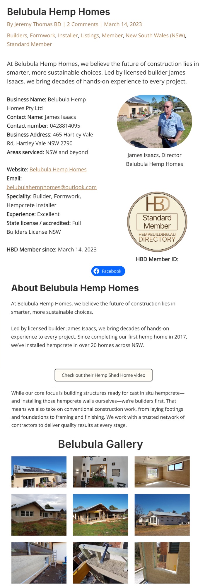 - Posted by Kirstie to Hemp Building Australia facebook page with 12 000+ followers